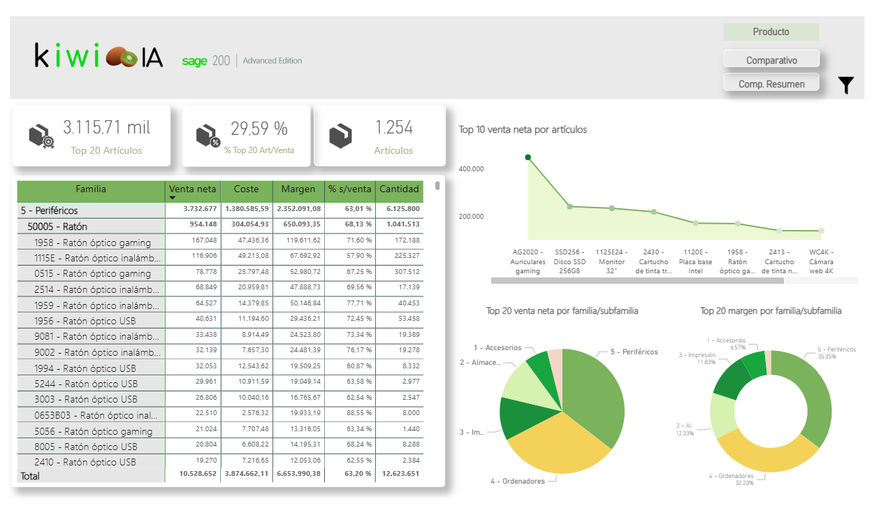 Toda esta información estará organizada para mostrarnos: la venta neta, coste, margen, % s/venta, cantidad.