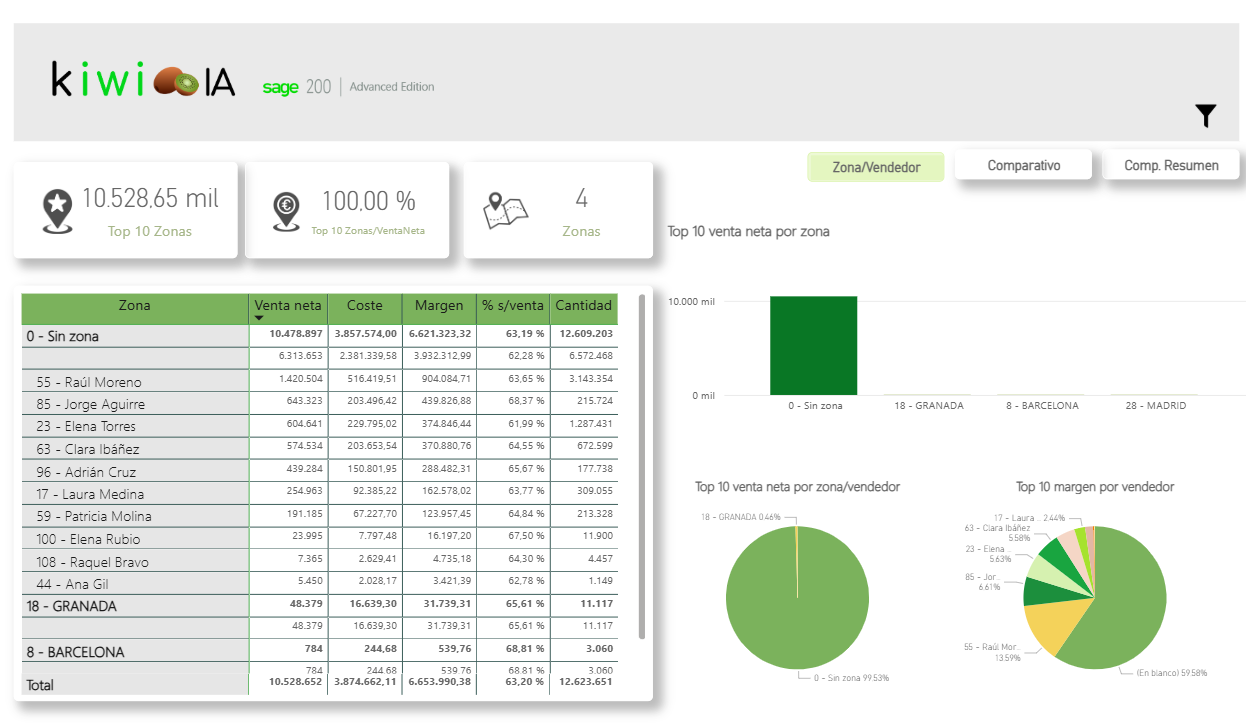 En este informe podremos analizar nuestras ventas desde el prisma de nuestros vendedores y zonas.