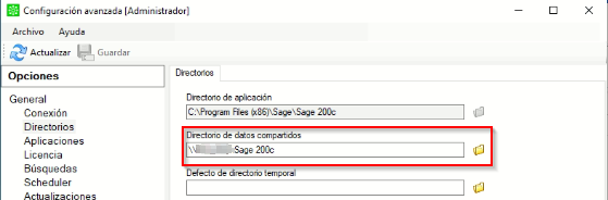 También debéis cambiar en la opción directorios, el directorio de datos compartidos por \\NOMBRE_DEL_SERVIDOR\Sage 200c: