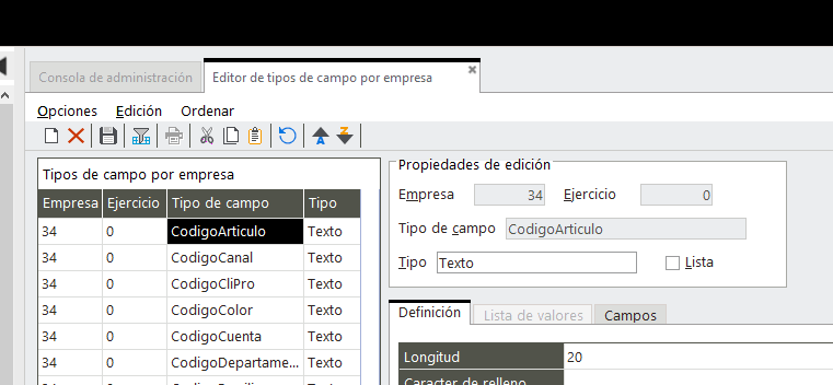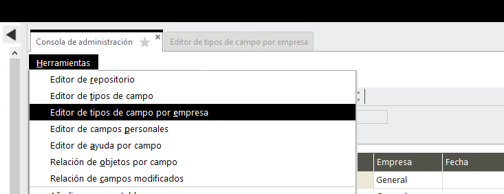 Para solucionarlo, hay que ir a Herramientas-Editor de tipos de campo por empresa: