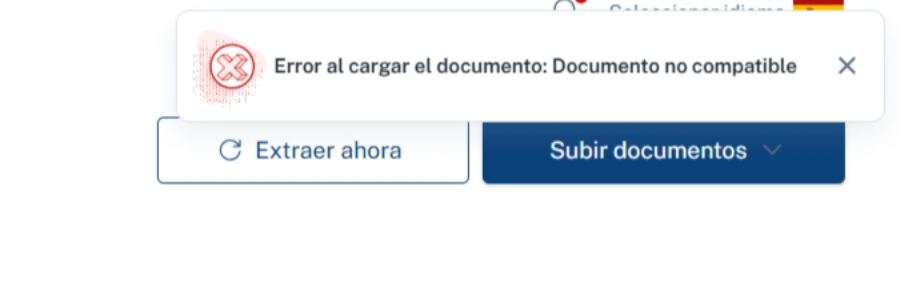 Si intentas cargar un documento en un formato que no es compatible con el sistema, recibirás un mensaje de error .