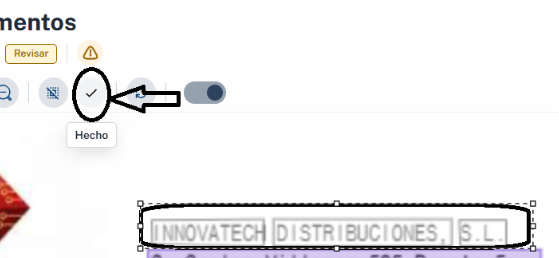 - En la interfaz de revisión del documento, localice el campo que desea completar