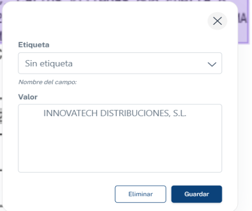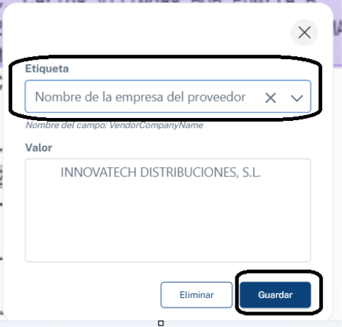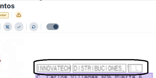 En algunos casos, el sistema puede no reconocer correctamente un campo que consta de varias palabras, por ejemplo, el nombre de una empresa. Por defecto, el sistema etiqueta solo una palabra.