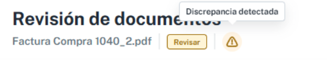 Estas comprobaciones automáticas son una funcionalidad avanzada. Si no ves el triángulo, puede ser que tu empresa no tenga activado este módulo o que la factura haya cuadrado perfectamente.