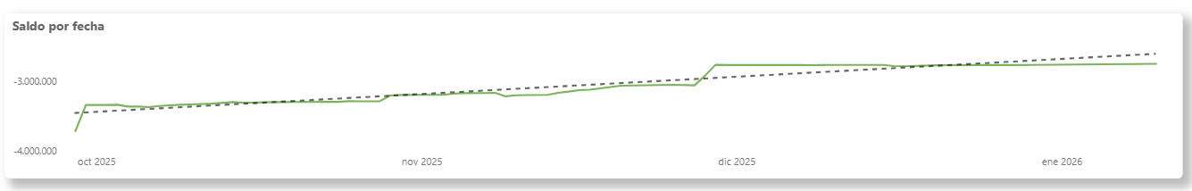 - Muestra la evolución del saldo a lo largo del periodo seleccionado.