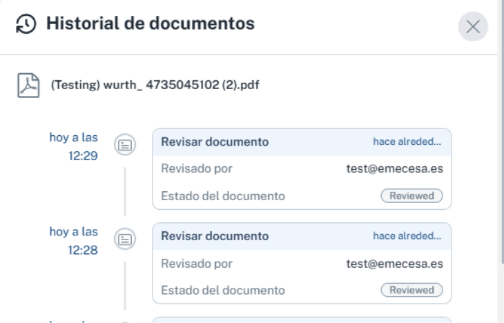Aquí podremos revisar las fechas, horas y usuarios que han procesado ese documento en concreto.