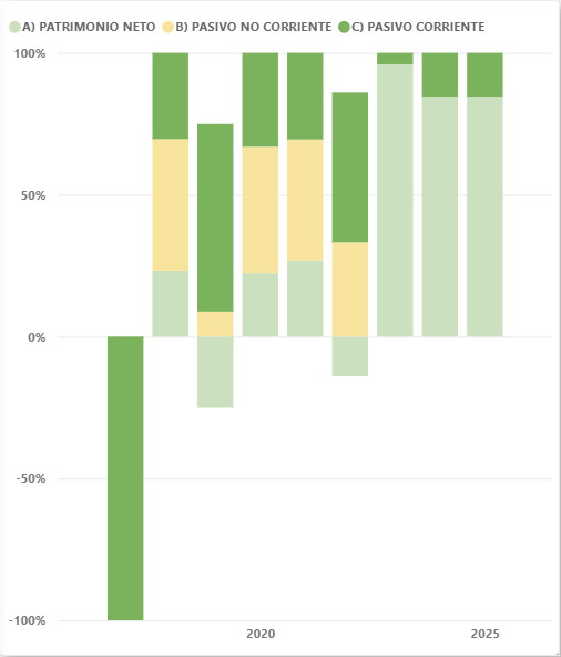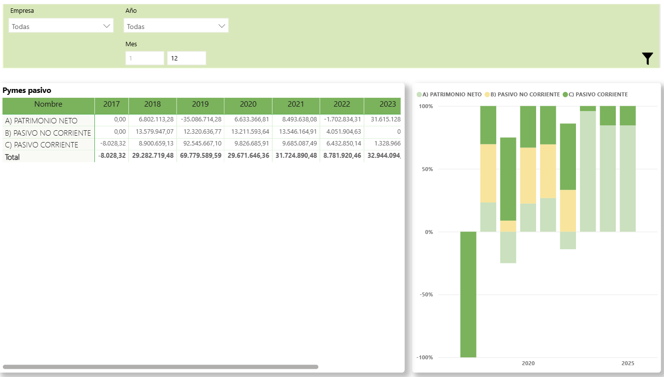 En este informe podremos analizar nuestro pasivo desde la perspectiva de clasificación en patrimonio neto, pasivo no corriente y pasivo corriente, permitiéndote visualizar la composición de la estructura financiera de tu empresa.