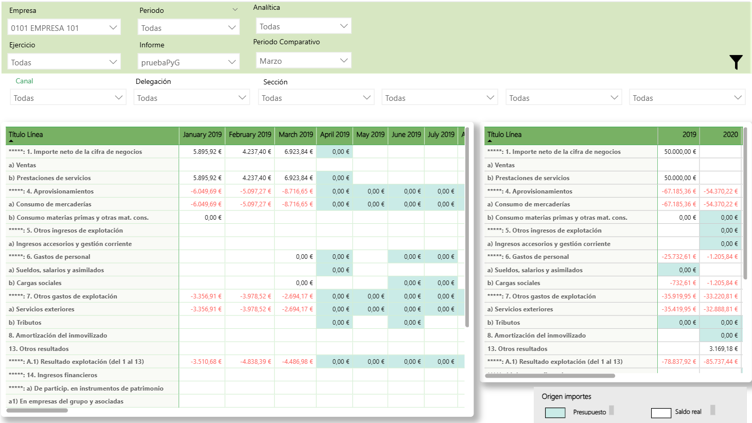 Además, dispones de una leyenda de Origen de importes que diferencia visualmente entre los datos de presupuesto y los datos de saldo real.
